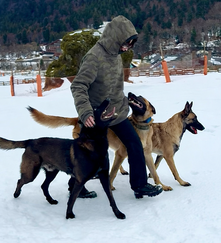 Le chien fait partie intégrante de ma vie puisque je partage mon quotidien avec trois Malinois, que je travaille chaque jour en éducation, obéissance et tricks.